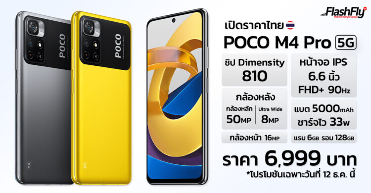 POCO ประเทศไทย ประกาศวางจำหน่าย POCO M4 Pro 5G สมาร์ทโฟนรุ่นใหม่ล่าสุดเพื่อตอบโจทย์ความบันเทิงสำหรับคนรุ่นใหม่ ภายใต้คอนเซ็ปต์ “Power Up Your Fun” เพิ่มพลังประสิทธิภาพการใช้งานในทุกมิติด้วยฟีเจอร์ที่ให้มาอย่างครบครันอย่างการใช้หน่วยประมวลผล MediaTek Dimensity 810 ซึ่งใช้เทคโนโลยีประมวลผลแบบ 6nm ที่มีประสิทธิภาพเทียบเท่ากับหน่วยประมวลผลของสมาร์ทโฟนระดับแฟล็กชิป ใช้หน้าจอ FHD+ Display ซึ่งรองรับอัตราการรีเฟรชเรทที่ 90Hz เติมเต็มทุกประสบการณ์ความบันเทิงได้อย่างไม่มีสะดุด มาพร้อมกับแบตเตอรี่ขนาดใหญ่ รองรับการชาร์จเร็ว 33W โปร (33W Pro) ที่ปรับปรุงขึ้นใหม่เพื่อให้รองรับการใช้งานได้ตลอดวัน นอกจากนี้ยังให้กล้องหลักความละเอียด 50 ล้านพิกเซล พร้อมโหมดถ่ายภาพสุดสร้างสรรค์ ทั้งยังมีฟิลเตอร์แต่งภาพมากมาย