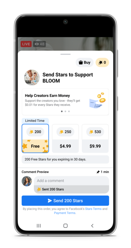 Facebook ในเครือ Meta เปิดตัวเทศกาล Stars Fest ในเดือนธันวาคม เทศกาลระดับโลกที่มีระยะเวลาหนึ่งเดือนเต็ม เพื่อเป็นการเฉลิมฉลองให้กับฟีเจอร์ดาวที่ช่วยให้ผู้คนได้สนับสนุนและสานสัมพันธ์กับครีเอเตอร์ที่ตนชื่นชอบได้อย่างลึกซึ้งมากขึ้น ฟีเจอร์ดาวบน Facebook ช่วยให้ครีเอเตอร์สามารถสร้างรายได้จากการเชื่อมต่อกับแฟนๆ ผ่านวิดีโอถ่ายทอดสด โดยครีเอเตอร์จะได้รับเงินจาก Meta ตามจำนวนดาวที่เขาได้รับจากแฟนๆ ฟีเจอร์ดาวได้ยกระดับประสบการณ์วิดีโอถ่ายทอดสดไปอีกขั้น ด้วยการมอบวิธีการเชื่อมต่อแบบอินเทอร์แอคทีฟและสนุกสนานให้กับแฟนๆ ในการสนับสนุนครีเอเตอร์ที่พวกเขาชื่นชอบ