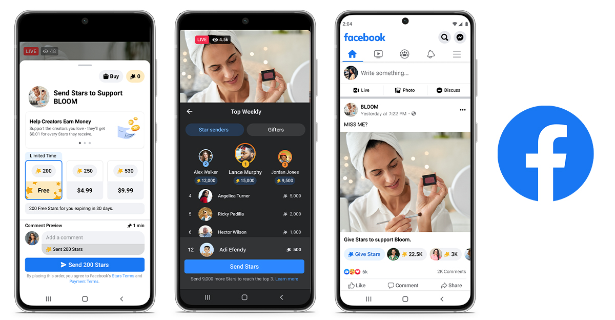 • Stars Creator Day: ในวันที่ 10 ธันวาคมนี้ Facebook จะพาครีเอเตอร์มารู้จักกับผู้นำด้านผลิตภัณฑ์ของ Facebook เพื่อร่วมแสดงไอเดียและเรื่องราวต่างๆ เกี่ยวกับฟีเจอร์ดาวและโลกของการสร้างรายได้บน Facebook ของครีเอเตอร์ เพื่อช่วยให้เหล่าครีเอเตอร์มีความเข้าใจเกี่ยวกับฟีเจอร์ดาวมากขึ้น