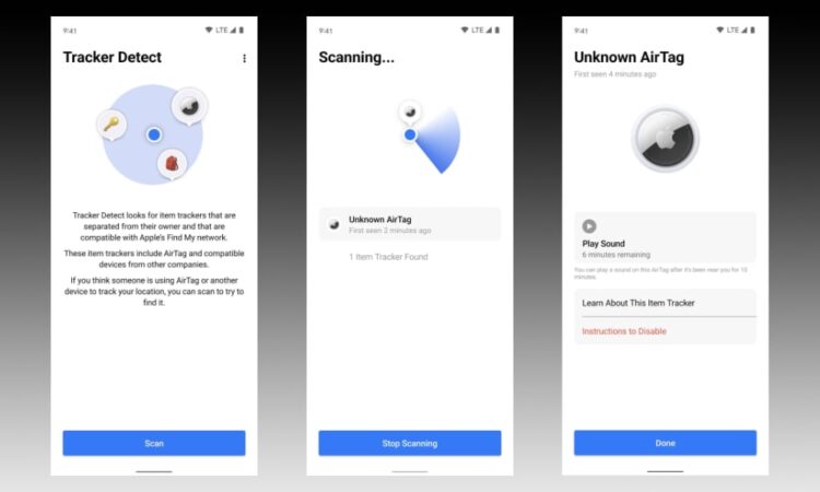 โดยแอปพลิเคชัน Tracker Detect นี้ เปิดให้ดาวน์โหลดจาก Google Play Store น่าเสียดายที่การทำงานไม่ได้ทำแบบเบื้องหลังหรือตรวจจับแบบอัตโนมัติ ผู้ใช้งาน Android จะต้องทำการเปิดใช้งานแอปพลิเคชันและทำการสแกนตรวจจับ AirTag แปลกปลอมเอาเอง และถ้าหากพบเจอ ก็สามารถสั่งให้ AirTag เล่นเสียงเพื่อทำการค้นหา AirTag แปลกปลอมที่ติดมากับตัวเราหรือรถยนต์ของเราได้