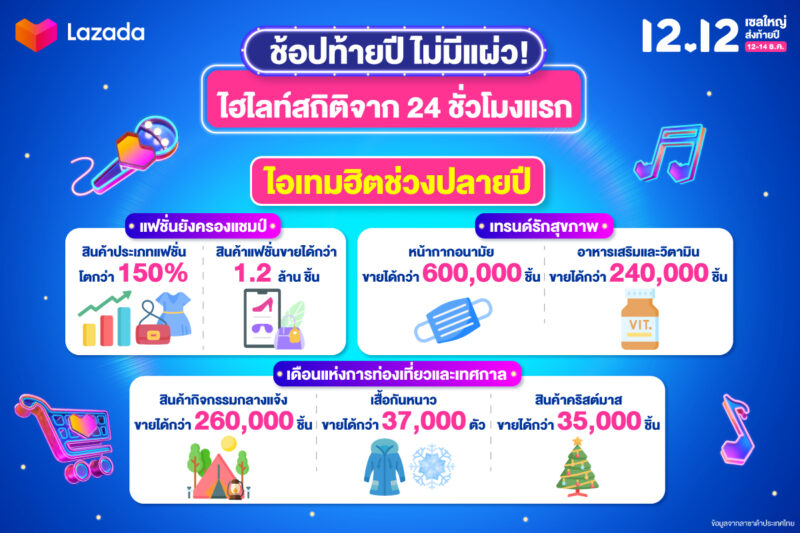 สถิติที่น่าสนใจอื่นๆ จาก “Lazada 12.12 Grand Year-End Sale เซลใหญ่ส่งท้ายปี” ในประเทศไทย ในวันที่ 12 ธันวาคม 2564 ได้แก่