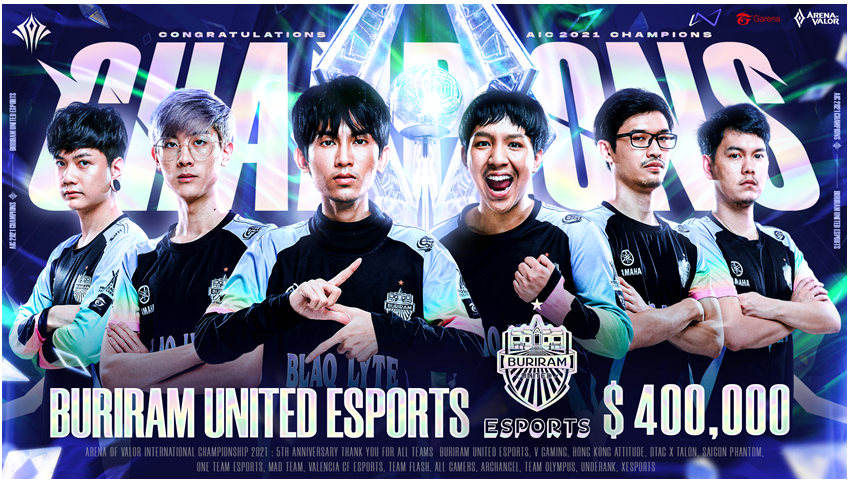 Buriram United Esports ตัวแทนจากภูมิภาคไทย และจาก RoV Pro League (RPL) ได้ถูกบรรจุเข้าไปเป็นหนึ่งในรายชื่อทีมแห่งเกียรติยศของเกม RoV ด้วยการคว้าชัยชนะในรอบ Grand Final ของการแข่งขัน AIC 2021 ไปได้ด้วยคะแนน 4-3 ส่งผลให้พวกเขาคว้าตำแหน่งแชมป์ พร้อมกับเงินรางวัลกลับบ้านไปถึง 400,000 ดอลลาร์สหรัฐ หรือกว่า 13,000,000 บาท หลังจากที่ได้ฝากการต่อสู้อันสุดร้อนแรงไว้บนสมรภูมิ