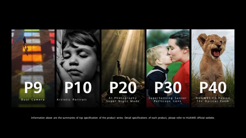 ตั้งแต่ HUAWEI P Series ได้ถือกำเนิดขึ้น หัวเว่ยก็ได้ก้าวเป็นผู้นำในด้านการออกแบบและเทคโนโลยีกล้อง ตั้งแต่ HUAWEI P9 ที่มี 2 กล้องในเครื่องเดียว วิวัฒนาการมาเป็น HUAWEI P10 Series ที่เป็นที่เลื่องลือในเรื่องกล้องถ่ายภาพ Portrait เมื่อก้าวสู่ HUAWEI P20 Series หัวเว่ยได้บุกเบิกการใช้ AI ในการถ่ายภาพ และการถ่ายภาพในที่แสงน้อยได้อย่างคมชัด ต่อมาจึงก้าวกระโดดสู่ความสามารถในการซูมระดับเพริสโคปที่เป็นที่ฮือฮาของ HUAWEI P30 Series และล่าสุดในปี 2020 หัวเว่ยได้เปิดตัว HUAWEI P40 Series เข้าสู่ยุคแห่งการถ่ายภาพที่ชาญฉลาดขึ้นไปอีกขั้นด้วย HUAWEI XD Fusion และ 10x Optical Zoom กับความสามารถในการซูมเพิ่มขึ้นมากกว่าเดิม ครั้งนี้หัวเว่ยพร้อมปฏิวัติวงการสมาร์ทโฟนอีกครั้งด้วย HUAWEI P50 Series