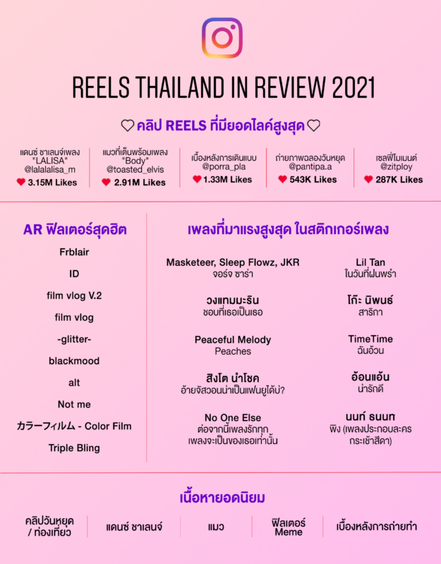 #ReelsTH ที่สุดของปี 2564 จาก Instagram เผยไทยเป็นหนึ่งในประเทศที่สร้างคลิปวิดีโอสั้นเติบโตเร็วที่สุดในภูมิภาค