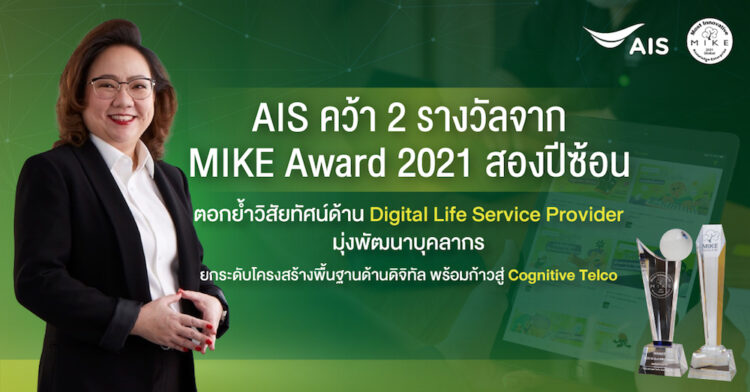 AIS คว้าสุดยอดองค์กรด้านนวัตกรรมชั้นนำระดับโลกกวาด 2 รางวัลจาก MIKE Award 2021 สองปีซ้อน ตอกย้ำวิสัยทัศน์ด้าน Digital Life Service Provider