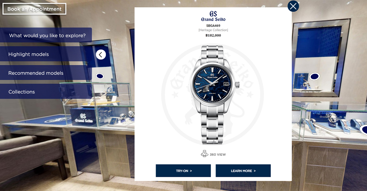 และนอกจากการเปิดตัว The first Grand Seiko Boutique Online Exclusive Edition แล้ว ทาง Grand Seiko ยังได้แนะนำฟีเจอร์ใหม่ล่าสุดบน Virtual Boutique บูติกเสมือนจริงแห่งแรกของแบรนด์ นั่นคือ ฟีเจอร์ Book an appointment ระบบการจองนัดหมายวันเพื่อให้ผู้เชี่ยวชาญจาก แกรนด์ ไซโก นำคอลเลคชั่นนาฬิกาสุดหรูไปให้ชมได้ทุกที่ในประเทศไทยหรือนัดหมายเข้าชมนาฬิการุ่นใหม่และรุ่นลิมิเต็ดอิดชั่นก่อนใครที่ร้านบูติกที่ใกล้ที่สุด อีกทั้งระบบได้มีการนำ Google Map Platform มาช่วยค้นหาและแสดงตำแหน่งที่อยู่บนแผนที่ โดยเมื่อพิมพ์ค้นหา ระบบจะแสดงที่อยู่ทั้งหมดโดยอัตโนมัติ ช่วยให้กรอกข้อมูลง่าย และถูกต้องยิ่งขึ้น ต่อด้วยฟีเจอร์ Try On สัมผัสนาฬิกา Grand Seiko ทุกเรือนในแบบเสมือนจริงทุกคอลเลคชั่น และสุดท้าย 360 Virtual View ที่สามารถค้นหาภาพพาโนรามาของคอลเลคชั่นใหม่ล่าสุดที่มีรายละเอียดของนาฬิกา เช่น แสงและเงา พื้นผิวบนหน้าปัด ความหนาของนาฬิกา และความยาวและขนาด ของสาย เป็นต้น