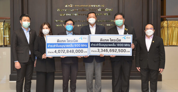 Dtac TriNet ชำระค่าคลื่นความถี่ 900 MHz และ 1800 MHz จากการประมูลและได้รับการจัดสรรคลื่นจาก กสทช