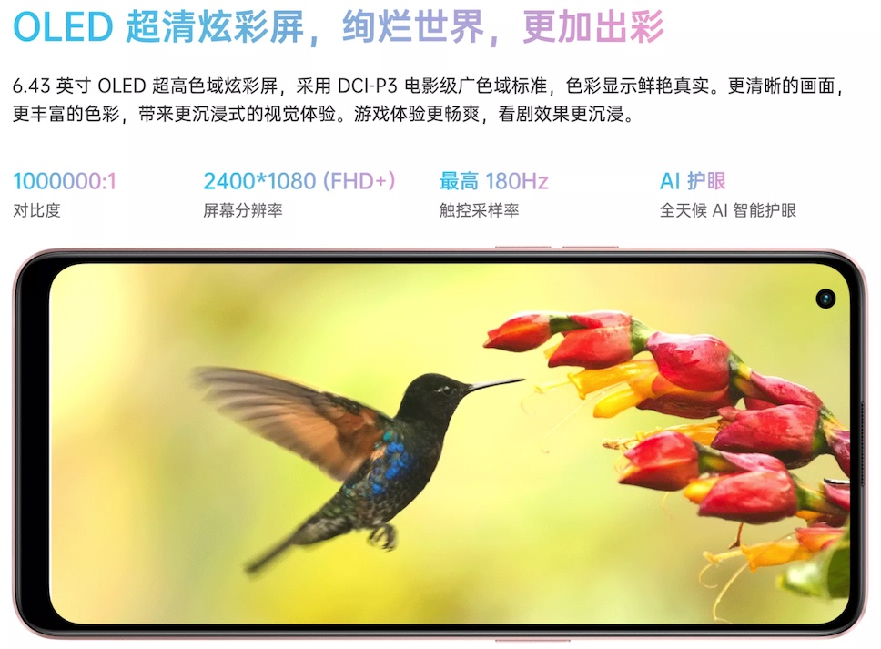 OPPO A96 5G มาพร้อมจอแสดงผล OLED ความละเอียด 2400 x 1080 พิกเซล ขนาด 6.43 นิ้ว รองรับขอบเขตสี DCI-P3 ติดตั้งเซ็นเซอร์สแกนลายนิ้วมือบนหน้าจอ และเจาะหลุมสำหรับวางกล้องหน้า 16 ล้านพิกเซล ส่วนกล้องคู่หลัง ประกอบด้วย กล้องหลัก 48 ล้านพิกเซล และกล้อง Depth 2 ล้านพิกเซล