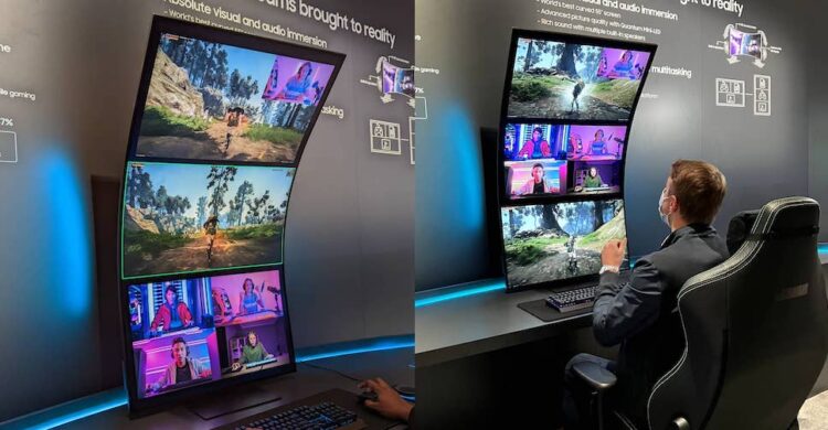 Samsung สร้างความประหลาดในในงาน Consumer Electronics Show (CES) 2022 ด้วยการเปิดตัวมอนิเตอร์จอโค้งขนาดใหญ่ที่สุดเท่าที่เคยมีมา Samsung Odyssey Ark ขนาด 55 นิ้ว มาพร้อมขาตั้งพิเศษที่ช่วยให้ผู้ใช้งานหมุนจอเป็นแนวตั้งได้