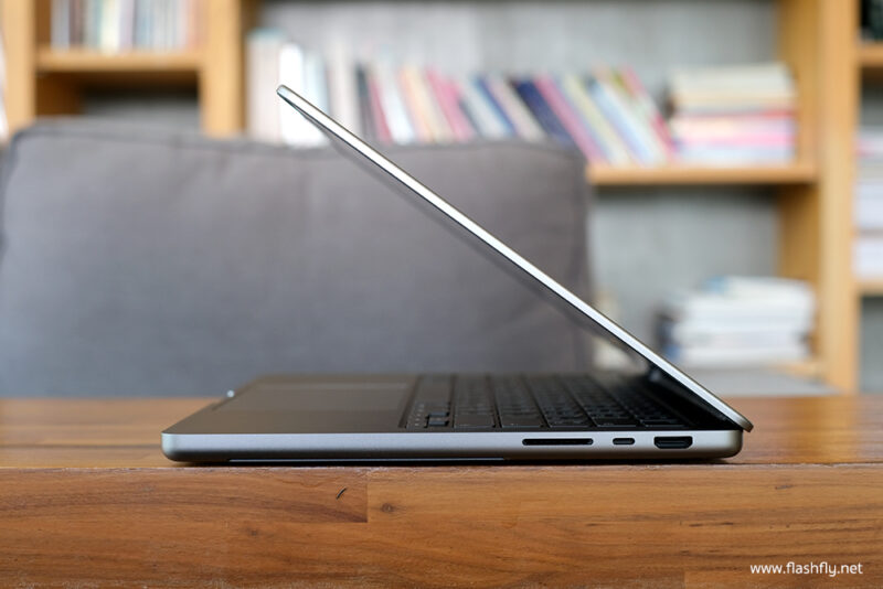 อย่างที่เคยได้กล่าวไปไปในรีวิว MacBook Pro รุ่น 16 นิ้ว ชิป M1 Max ว่าในปี 2021 ที่ผ่านมา ทาง Apple ได้ทำการปรับโฉม MacBook Pro ใหม่ มีการดีไซน์ในช่วงยุคปี 2008 กลับมาใช้งาน ทำให้ตัวเครื่องที่มีความหนาและโค้งมนขึ้นกว่าแบบเดิม ฝาด้านนอกจะมีโลโก้ Apple ที่ยังคงเป็นแบบทึบ มีความแวววาว ซึ่งดีไซน์ของฝาก็มีขอบที่มีความโค้งและหนาขึ้นแบบชัดเจน สำหรับสีที่ทีมงานได้มาทดสอบก็คือ สีเทาสเปซเกรย์ ซึ่งจะมีสีเงินให้เลือกเพิ่มเติม
