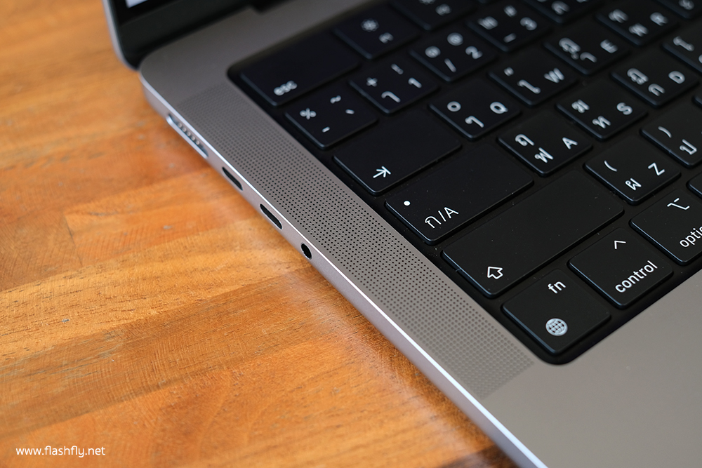 MacBook Pro รุ่น 14 นิ้ว ชิป M1 Pro ยังมาพร้อมกับพอร์ตที่มากขึ้นกว่ารุ่นก่อนหน้า โดยมีพอร์ต MagSafe, พอร์ต Thunderbolt 4 (USB-C) จำนวน 2 พอร์ต และ ช่องต่อหูฟัง 3.5 มม. ที่วางอยู่ด้านซ้ายของตัวเครื่อง ส่วนด้านขวาของตัวเครื่องก็มาพร้อมกับพอร์ต HDMI, พอร์ต Thunderbolt 4 (USB-C) และช่องเสียบการ์ด SDXC