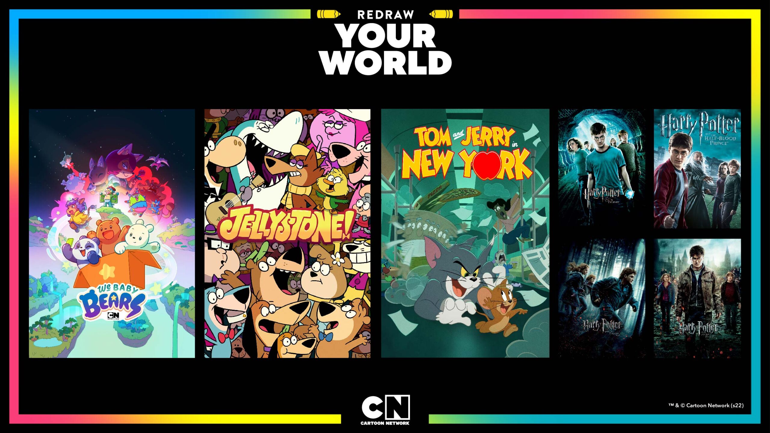 นอกจากสีสันที่สดใส ดนตรีและดีไซน์ใหม่ที่ทุกคนจะสัมผัสได้แล้ว ยังรวมถึงหลากหลายคอนเทนต์ใหม่ที่ได้รับการดีไซน์และคัดเลือกเพื่อที่แฟนๆจะได้รับชมคอนเทนต์และเรื่องราวที่น่าสนใจ ผ่านตัวละครที่มีสีสันทางช่อง Cartoon Network รวมทั้งแคมเปญ “Redraw Your World” ที่จะทำให้โลกของเด็กๆเต็มไปด้วยความสนุกสนาน และสร้างความมั่นใจที่จะเป็นตัวเองในศักยภาพที่พวกเขามี