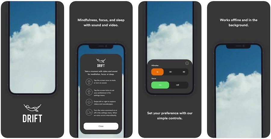 Drift – wellness + sleep จาก Digital Park LLC เป็นแอปพลิเคชั่นที่รวบรวมเสียงและวิดีโอ สำหรับการฝึกสมาธิ และช่วยในการนอนหลับ ปกติจำหน่ายในราคา 4.99 ดอลล่าร์สหรัฐ หรือราว 190 บาท แต่ตอนนี้สามารถดาวน์โหลดฟรี!! (จำกัดเวลา)