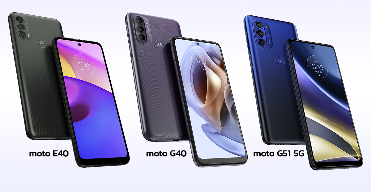 โมโตโรล่า สานต่อคุณภาพของแบรนด์ยอดนิยมที่มุ่งมั่นนำเสนอประสบการณ์การใช้สมาร์ทโฟนฟีเจอร์ระดับพรีเมี่ยมในราคาที่เข้าถึงได้ ด้วยการประกาศเปิดตัวสมาร์ทโฟนรุ่นใหม่ล่าสุด 3 รุ่น ยกระดับประสบการณ์การใช้งานที่สร้างสรรค์ เชื่อมต่อ และเปิดกว้างด้วย moto g51 5G และ moto g31 เพื่อประสิทธิภาพและแบตเตอรี่ที่แข็งแกร่ง พร้อมกล้องถ่ายภาพฟีเจอร์ไม่ซ้ำใคร เสริมทัพด้วย moto e40 เปิดรับความบันเทิงและการใช้งานอย่างเต็มประสิทธิภาพ