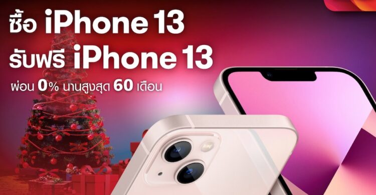 เงื่อนไขรับ iPhone 13 ฟรี!! อีกเครื่อง เพียงซื้อ iPhone 13 หรือ iPhone 13 Pro หรือ iPhone 13 Pro Max ในราคาเต็มความจุใดก็ได้ พร้อมชำระค่าบริการล่วงหน้า 6,000 บาท และสมัครแพ็กเกจรายเดือน 1199 หรือ 1399