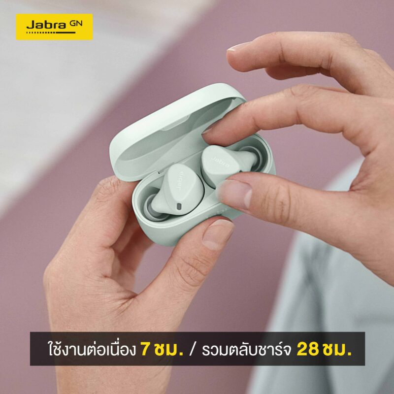 ยิ่งไปกว่านั้นตัวหูฟังยังออกแบบให้สวมใส่กระชับและพอดีกับสรีระของหูทำให้คล่องตัวขณะใช้งาน แถมไม่ต้องกังวลว่าหูฟังจะหลุดระหว่างออกกำลังกาย ทั้งยังสามารถกันละอองน้ำและฝุ่นตามมาตรฐาน IP57 ที่สำคัญยังมาพร้อมไมโครโฟนในตัวถึง4ตัวที่ได้รับการออกแบบด้วยผ้าตาข่ายพิเศษเพื่อเพิ่มการป้องกันเสียงลมและเสียงรบกวนจากสภาพแวดล้อมรอบข้าง ทำให้ได้ยินเสียงการโทรที่ชัดเจน ทั้งยังรองรับการปรับแต่ง Equalizer ผ่านการทำงานร่วมกับแอปฯ JabraSound+ซึ่งจะช่วยให้ผู้ใช้สามารถปรับแต่งเสียงเพลงต่างๆได้ด้วยตนเองตามต้องการแถมยังเพิ่มความสะดวกในการเชื่อมต่อกับ SpotifyTap และ AmazonAlexa เพื่อให้สามารถเข้าถึงเพลงโปรดได้อย่างรวดเร็วทั้งยังรองรับ Google FastPair, Google Assistant และ Siri โดยแบตเตอรี่รองรับการใช้งานได้ยาวนานต่อเนื่อง 7 ชั่วโมง เมื่อเปิด ANC และอยู่ได้นานสูงสุดถึง 28 ชั่วโมงเมื่อใช้ร่วมกับเคสชาร์จ พร้อมรองรับการชาร์จเร็วโดยชาร์จแค่ 10 นาที สามารถฟังเพลงได้นานอีก 60 นาที โดยวางจำหน่ายในราคา 3,990 บาท