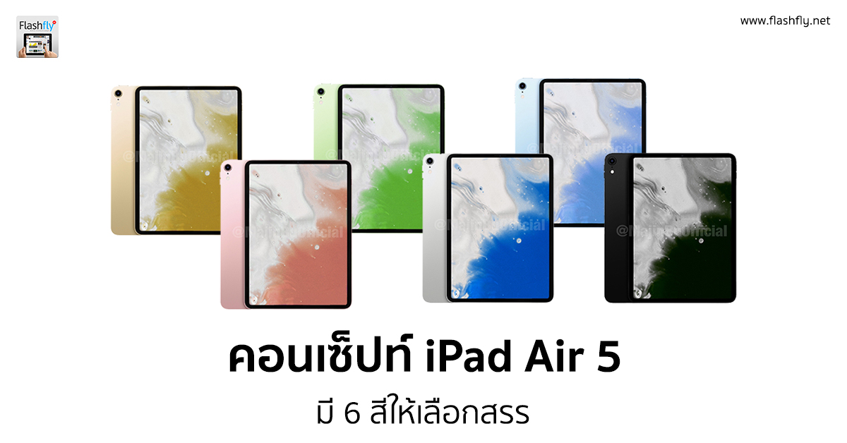 ล่าสุด @MajinBuOfficial ก็ได้ปล่อยภาพคอนเซ็ปท์ของ iPad Air รุ่นใหม่ออกมาถึง 6 สีด้วยกัน ได้แก่ สีชมพู, ฟ้า, ทอง, เขียว, เงิน และ ดำ แต่ละสีจะสวยงามแค่ไหน ดูภาพคอนเซ็ปท์จากด้านล่างได้เลย
