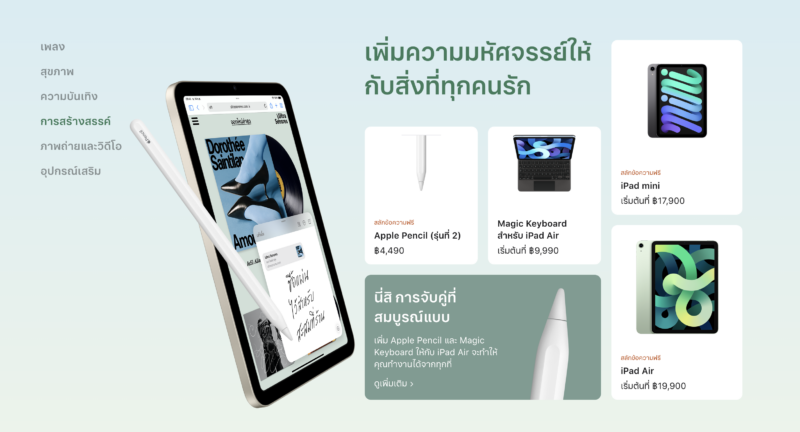 ซึ่งหากใครที่ยังนึกอะไรไม่ออกว่าจะซื้ออะไรเป็นของขวัญให้กับคนที่คุณรัก ก็ลองเข้ามาดูไอเดียเซ็ตของขวัญจาก Apple ดูได้ ซึ่งทาง Apple ก็ได้จัดอุปกรณ์มาให้ค่อนข้างหลากหลายและตอบโจทย์ต่อการใช้งานด้านต่างๆ ไม่ว่าจะเป็น AirPods 3, Apple Watch, AirTag, iPhone และอุปกรณ์เสริมต่างๆ