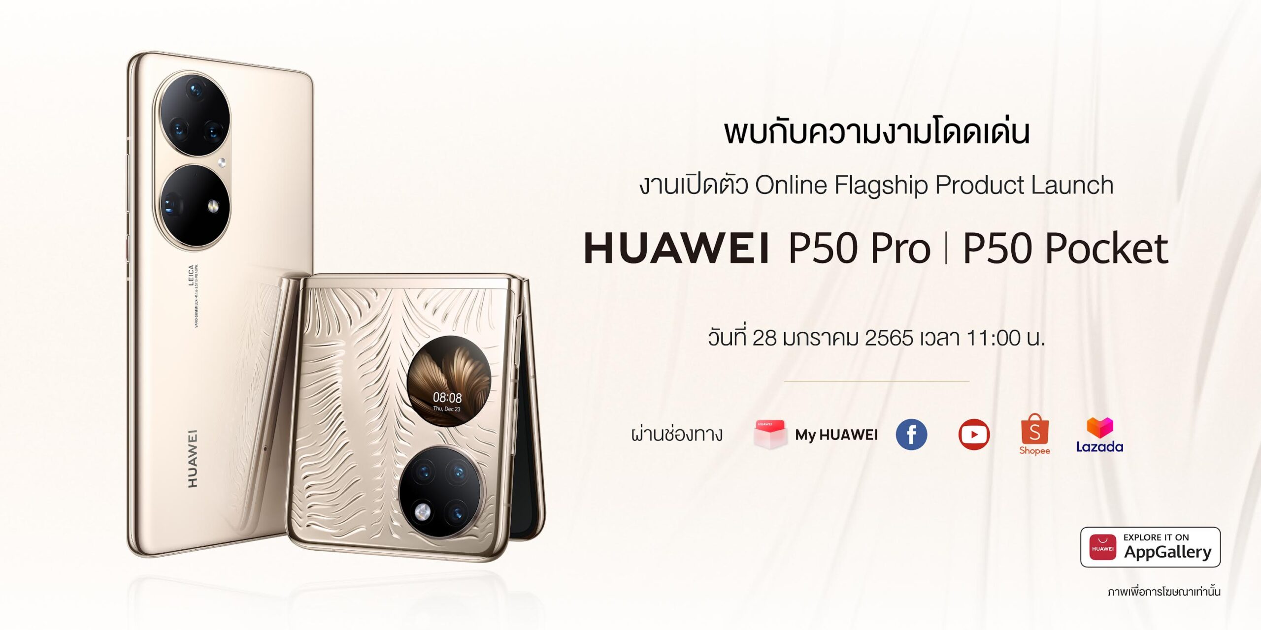 หัวเว่ย คอนซูมเมอร์ บิสสิเนส กรุ๊ป พร้อมแล้วที่จะนำสมาร์ทโฟนเรือธง ไอคอนของการถ่ายภาพอย่าง HUAWEI P Series มาให้คนไทยได้เป็นเจ้าของ เตรียมพบกับการประกาศราคาอย่างเป็นทางการของ HUAWEI P50 Pro และ HUAWEI P50 Pocket นำเสนอความเป็น “อีกขั้น” ของสมาร์ทโฟนเรือธงประจำปี 2022 อย่าพลาด รอติดตามชมไลฟ์สตรีมงานเปิดตัว Online Flagship Product Launch วันศุกร์ที่ 28 มกราคม 2565 นี้ 11.00 น. ผ่าน Facebook และ YouTube ของ HUAWEI Mobile Thailand