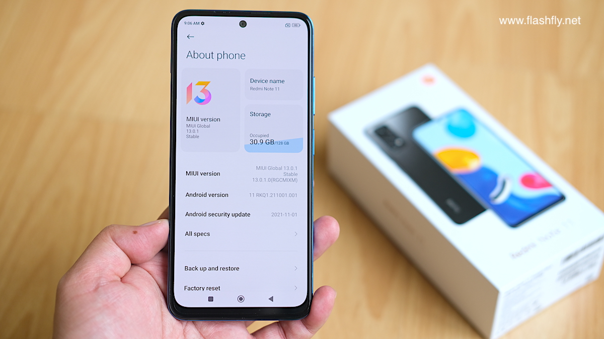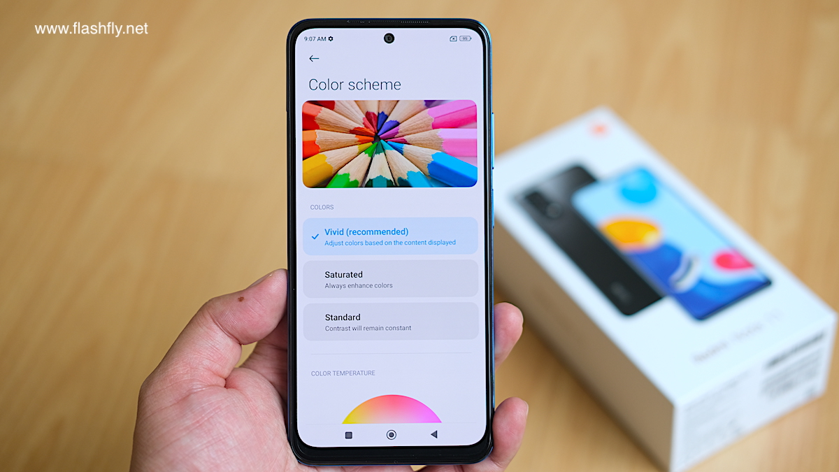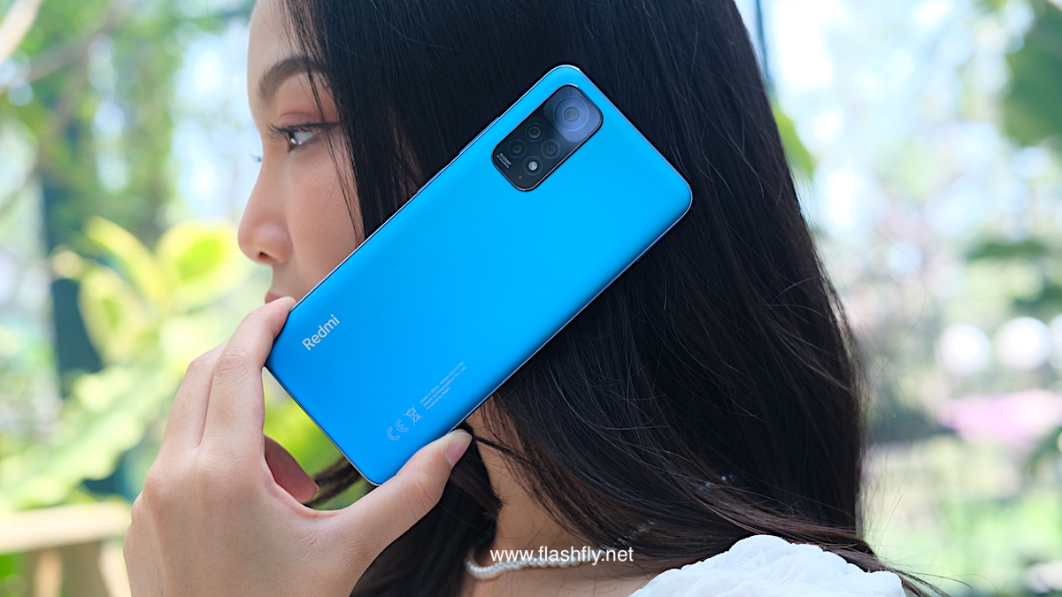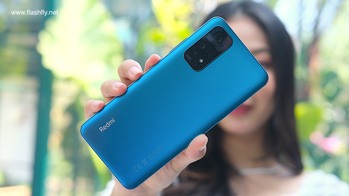 ทีมงาน @Flashfly ได้รับสี Twilight Blue มารีวิว มีพื้นผิวด้านเช่นเดียวกับสี Graphite Gray ทำให้เกิดรอยนิ้วมือได้ยาก ขณะที่สี Star Blue ใช้เทคนิคไล่ระดับสี และมีพื้นผิวแวววาวราวกับแสงดาว แต่ไม่ว่าจะเลือกสีอะไร ก็ได้รับการผลิตอย่างมีคุณภาพเท่าเทียมกัน และยังถูกสร้างมาให้ป้องกันฝุ่นและน้ำในระดับ IP53 หมายความว่า Redmi Note 11 สามารถกันฝุ่นละอองได้เป็นอย่างดีในระดับ 5 (ระดับสูงสุดอยู่ที่เลข 6) และทนน้ำได้ในระดับ 3 ป้องกันแค่ละอองน้ำหรือสายฝนเบาๆ เท่านั้น ไม่สามารถนำไปแช่เล่นในน้ำได้แบบ IP68