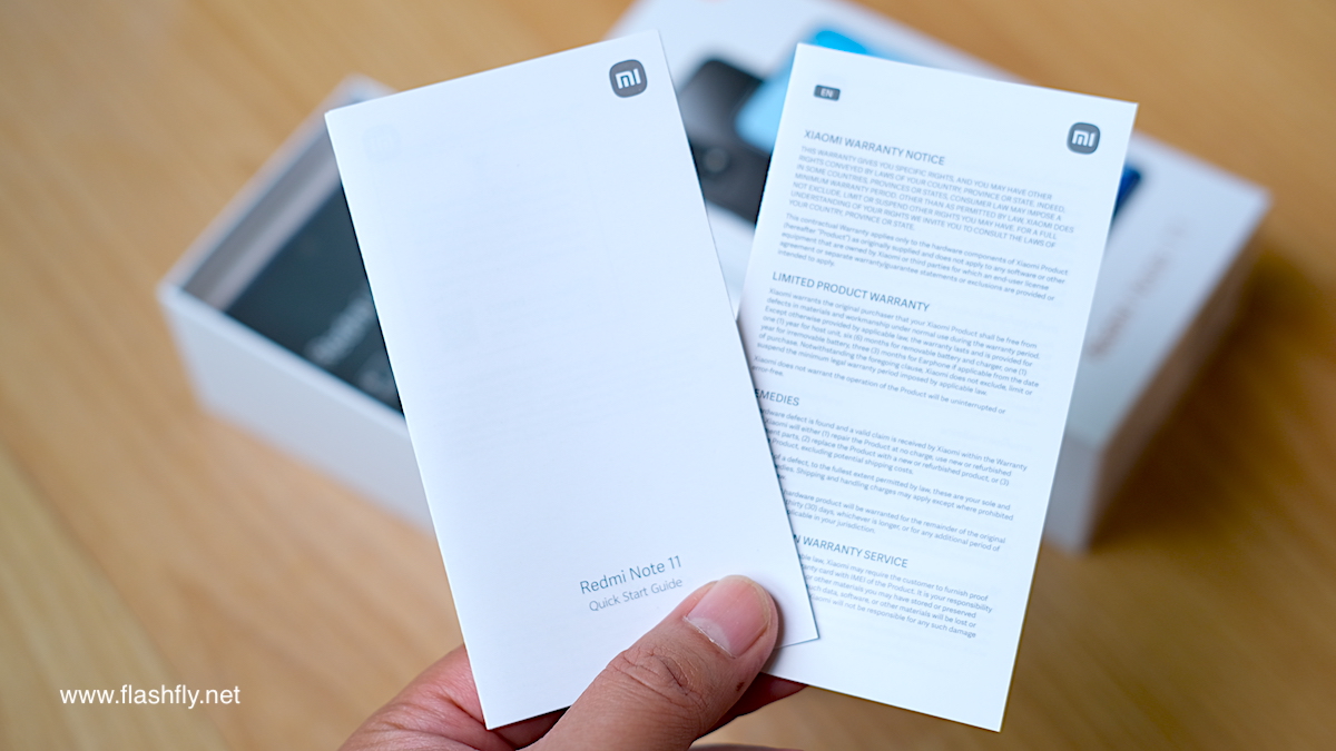 หลังจากแกะซองที่ห่อหุ้มตัวเครื่อง จะพบว่า Redmi Note 11 ได้รับการติดฟิล์มป้องกันหน้าจอมาให้แล้ว