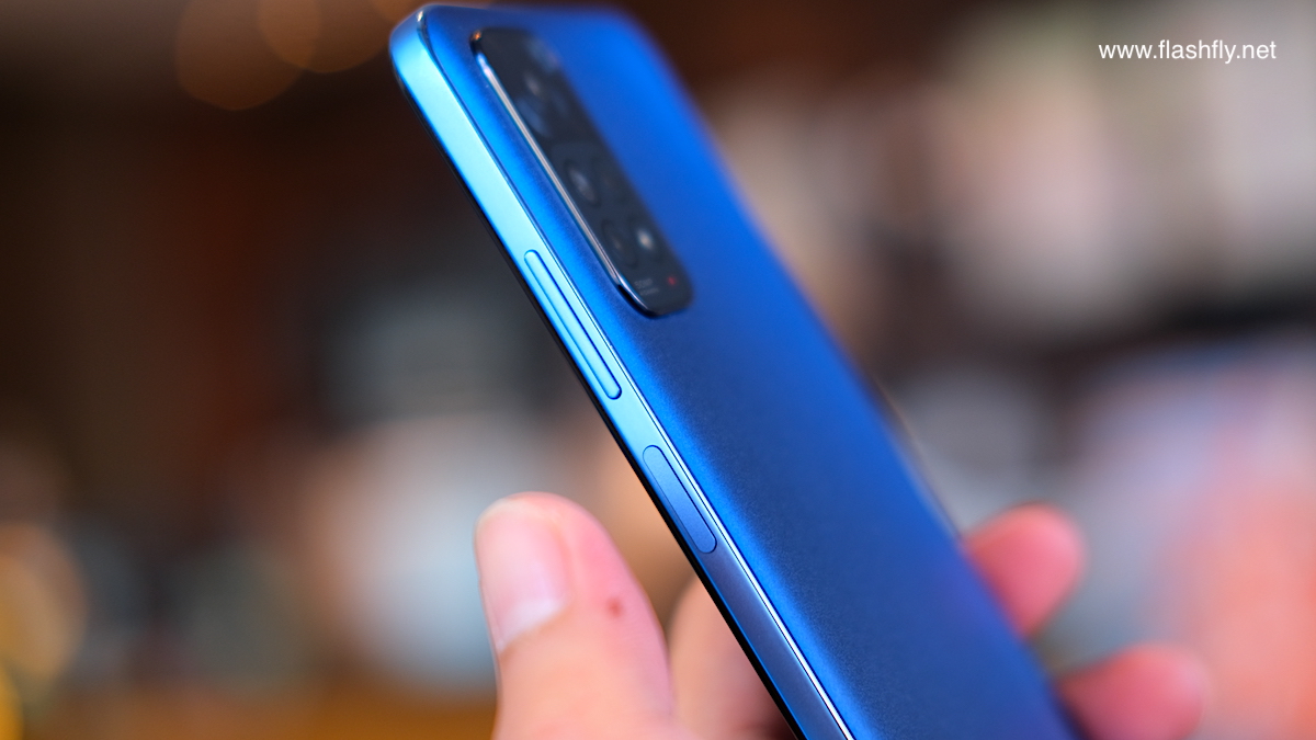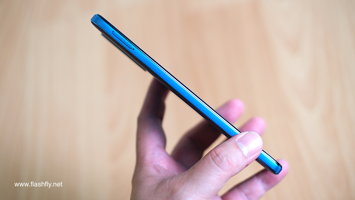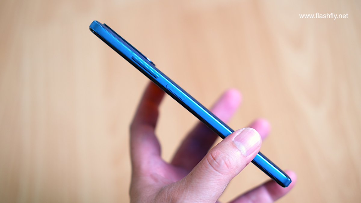 ขอบด้านข้างมีความบาง 8.09 มิลลิเมตร ติดตั้งปุ่มปรับระดับเสียง ไว้เหนือปุ่มเพาเวอร์ โดยปุ่มเพาเวอร์ยังมีการซ่อนเซ็นเซอร์สแกนลายนิ้วมือเอาไว้ด้วย
