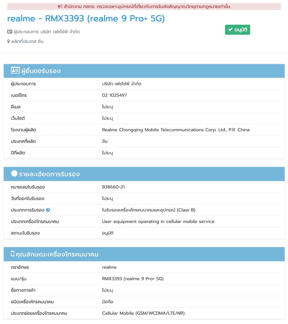 กำหนดการเปิดตัวสมาร์ทโฟน realme 9 Pro+ 5G ใกล้เข้ามาแล้ว หลังจากผ่านการรับรองโดย กสทช. และ FCC อีกทั้งยังถูกทดสอบประสิทธิภาพบนแอปพลิเคชั่น Geekbench ซึ่งทำได้ 818 คะแนน สำหรับ single-core และ 2,324 คะแนน สำหรับ multi-core