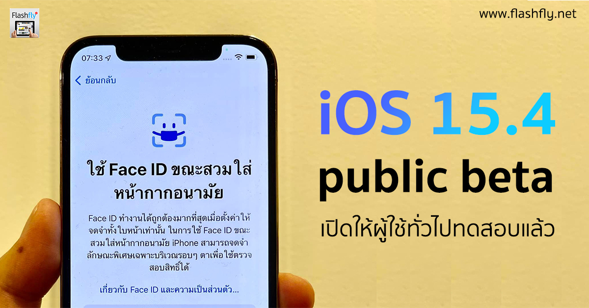 เมื่อวานนี้ Apple ได้ปล่อย iOS 15.4 beta ที่มาพร้อมกับฟีเจอร์ปลดล็อค iPhone ด้วย Face ID ขณะสวมหน้ากากอนามัยให้กับนักพัฒนาได้ทดสอบ และตอนนี้ Apple ก็ได้เปิดให้ผู้ใช้งานทั่วไปได้ทดสอบในเวอร์ชัน public beta แล้ว ซึ่งรวมถึง iPadOS 15.4 beta และ macOS Monterey 12.3 beta ด้วย