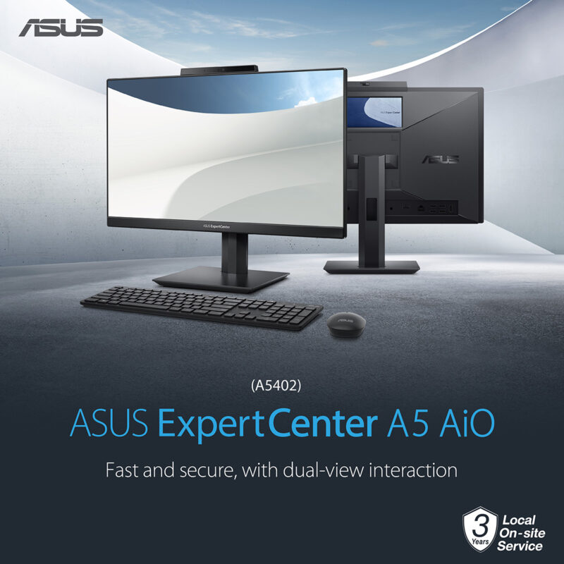 ExpertCenter A5 AiO (A5402) เครื่องคอมพิวเตอร์ออลอินวัน ออกแบบมาสำหรับการทำธุรกิจในโลกยุคใหม่ ชูนวัตกรรมล่าสุดหน้าจอ ASUS VeriView* หรือหน้าจอที่สองติดตั้งบริเวณด้านหลังตัวเครื่อง เปิดประสบการณ์ใหม่ระหว่างผู้ให้และผู้รับบริการ รองรับแอปพลิเคชั่นทางธุรกิจที่หลากหลาย อาทิ ธุรกิจโรงแรมที่ลูกค้าสามารถตรวจสอบข้อมูลความถูกต้องได้ทันทีเมื่อทำการเช็คอินห้องพัก หรือแสดงรายการอาหารและเครื่องดื่มสำหรับร้านอาหาร ทั้งยังสามารถใช้เพื่อการโฆษณาโปรโมชั่น หรือข่าวสารต่างๆ แก่ลูกค้าได้โดยสะดวกและรวดเร็วยิ่งขึ้น นอกจากนี้ ExpertCenter A5 และ E5 AiO ยังมาพร้อมโปรเซสเซอร์สูงสุด 11th Gen Intel Core i5 มั่นใจทุกการใช้งาน พร้อมการเชื่อมต่อความเร็วสูง WiFi 6E เพื่อการทำงานแบบไร้สายที่รวดเร็วและการเชื่อมต่อที่มีเสถียรภาพ, หน่วยความจำอัปเกรดได้สูงสุด 32 GB DDR4, พื้นที่จัดเก็บข้อมูลแบบ SSD อัปเกรดได้ สูงสุด 2TB พร้อมระบบความปลอดภัยและระบบรักษาความเป็นส่วนตัวมาตรฐานองค์กร อาทิ ชิป Trusted Platform Module (TPM) 2.0 ที่ติดตั้งมา ป้องกันการรั่วไหลของข้อมูล พร้อมด้วยตัวล๊อก Kensington ปกป้องตัวเครื่องจากการโจรกรรม