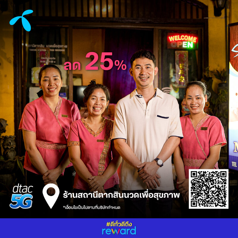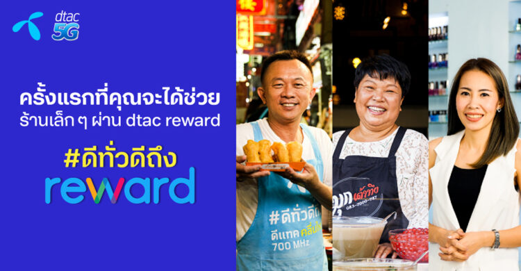 ดีแทค รีวอร์ด จัดแคมเปญ #ดีทั่วดีถึง reward ช่วยโปรโมทร้านค้าเล็กๆในโปรแกรมดีแทค รีวอร์ด ครั้งแรกที่เปิดให้ร้านเล็ก ๆ เข้าร่วมโปรแกรมรีวอร์ดใหม่ ที่เป็นสะพานเชื่อมลูกค้าดีแทคหลายสิบล้านคน ให้เข้ามาช่วยกันอุดหนุนสินค้าและบริการ พร้อมมอบสิทธิพิเศษส่วนลดให้อีกเพียบ ดีแทคขอชวนทุกคนมาช่วยกันให้ร้านค้าเล็ก ๆ ได้กลับมายิ้ม กลับมาฟื้นตัวได้โดยเร็ว