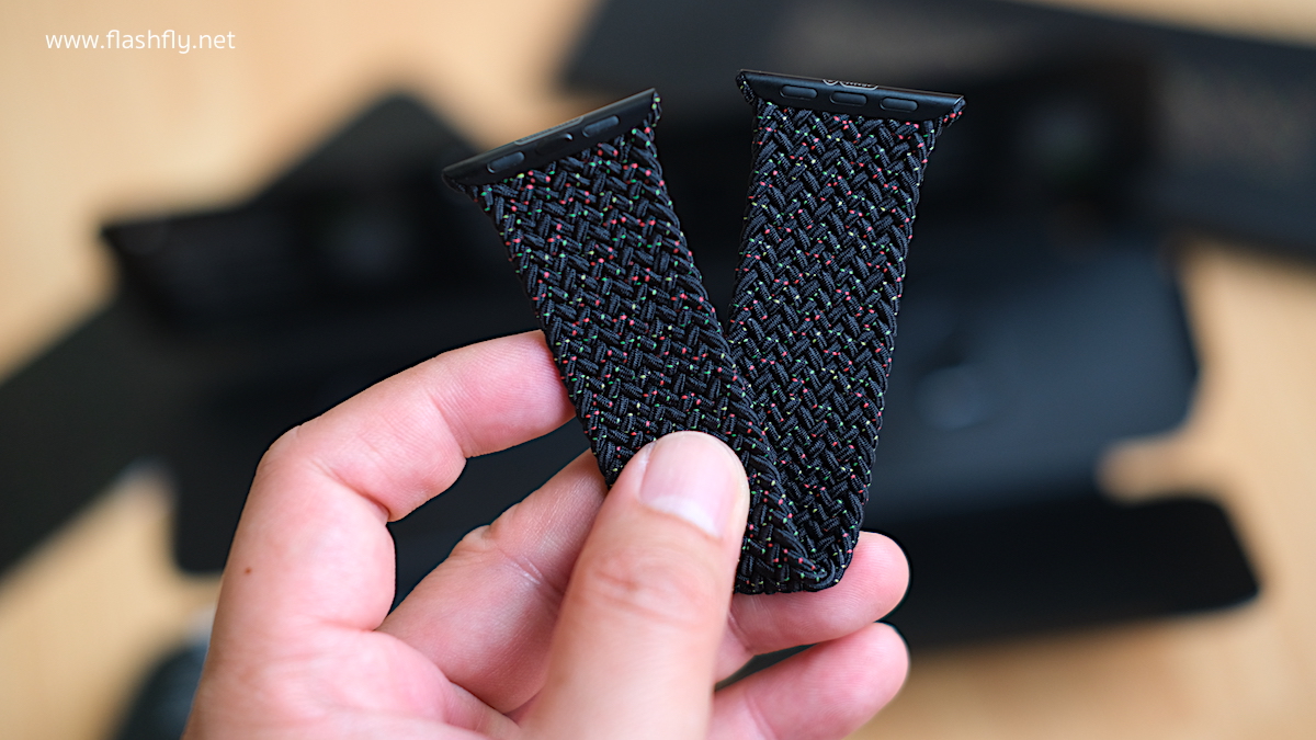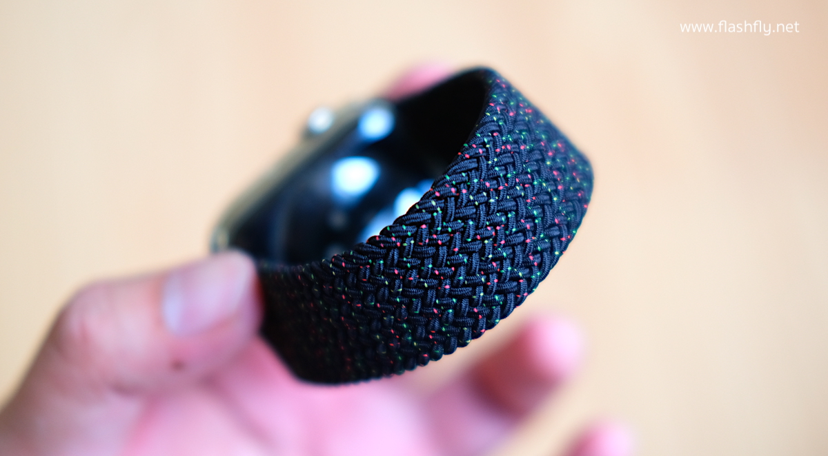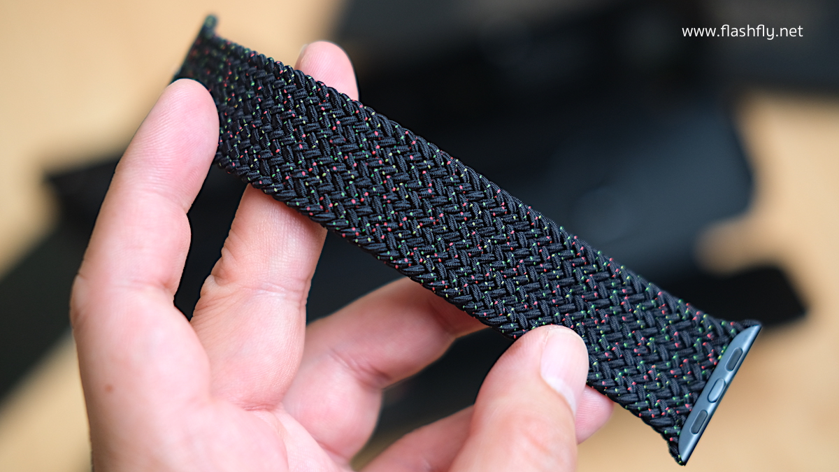 สาย Apple Watch แบบ Braided Solo Loop รุ่น Black Unity ใช้วัสดุและกระบวนการผลิตแบบเดียวกับสาย Braided Solo Loop ที่เปิดตัว Apple Watch Series 6 ถูกสร้างขึ้นจากด้ายโพลีเอสเตอร์รีไซเคิล ที่ทำมาจากเส้นใยยาวมากกว่า 16,000 เส้น มาถักหุ้มรอบด้ายซิลิโคนที่บางเฉียบ และใช้เครื่องทอที่มีความแม่นยำขั้นสูง