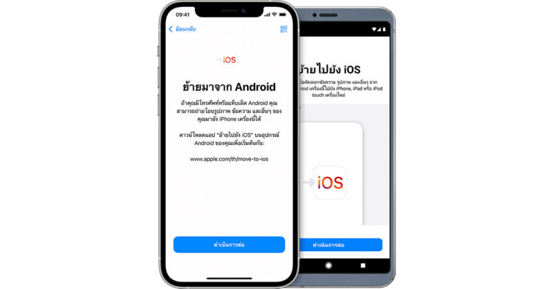 เริ่มต้นโดยการดาวน์โหลดแอป “ย้ายไปยัง iOS” จาก Google Play Store บนโทรศัพท์ Andriod แล้วให้แอปช่วยถ่ายโอนข้อมูลสำคัญอย่างรายชื่อ ข้อความ รูปภาพ วิดีโอ บัญชีเมล และปฏิทินจากโทรศัพท์ Android มายัง iPhone เครื่องใหม่อย่างปลอดภัย