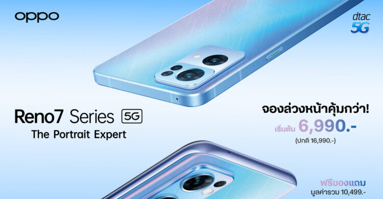 เตรียมสัมผัสอีกขั้นของวิดีโอและภาพพอร์ตเทรตไปกับ OPPO Reno7 Series 5G ในราคาสุดคุ้ม พร้อมสิทธิพิเศษมากมายเมื่อจองผ่านดีแทค ตั้งแต่วันนี้ – 18 กุมภาพันธ์นี้