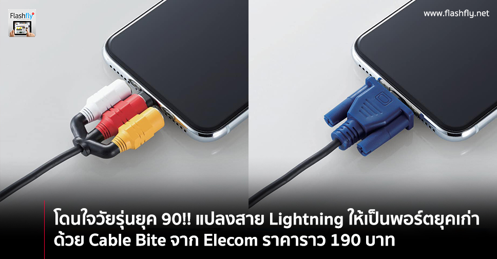 Elecom บริษัทอิเล็กทรอนิกส์จากญี่ปุ่น เปิดตัว Cable Bite ในรูปแบบพอร์ตยุคเก่า สำหรับแปลงร่างสาย Lightning ให้กลายเป็น Input/Output สไตล์เรโทร มีทั้ง D-Sub หรือ VGA, AV รวมถึงปลั๊กไฟ 2 ขา หรือจะนำไปใช้กับสาย USB หรือ สายหูฟัง 3.5 มิลลิเมตร ก็ได้เช่นกัน