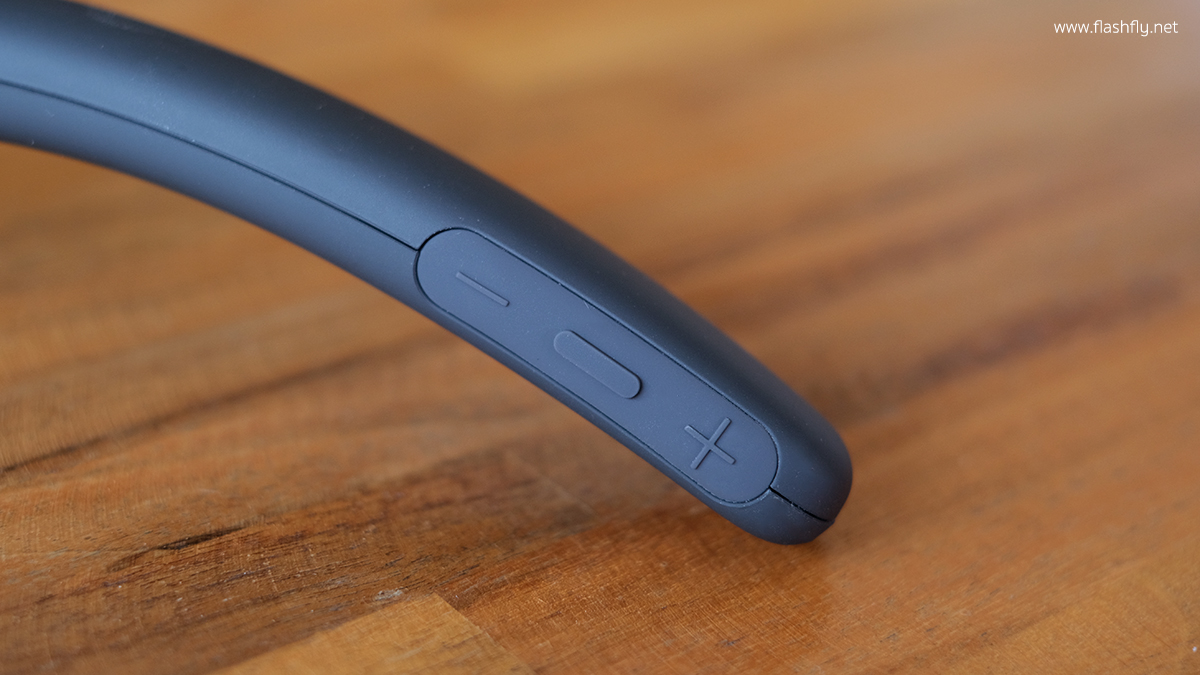 ด้านซ้ายจะเป็นปุ่มเล่น/หยุด วางอยู่ตรงกลางระหว่างปุ่มปรับระดับเสียง ซึ่งการวางตำแหน่งปุ่มต่างๆ จะถูกวางไว้ฝ่งด้านใน เพื่อให้ใช้งานกดได้ไม่ยาก และไม่เผลอไปโดนแบบไม่ได้ตั้งใจ