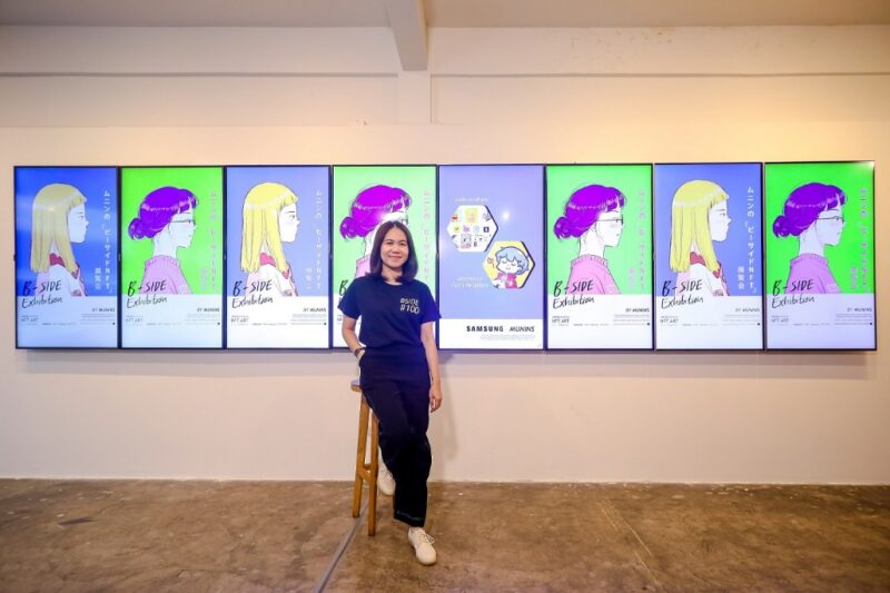 นิทรรศการ B-SIDE Solo Exhibition By Munins คือความร่วมมือครั้งล่าสุดของซัมซุง กับการร่วมสนับสนุนทั้งในด้านการสร้างสรรค์ผลงานศิลปะผ่านแท็บเล็ต Galaxy Tab S8 Ultra และการจัดแสดงผ่านหน้าจอทีวี The Frame เพื่อถ่ายทอดผลงานคอลเลคชันภาพพอร์เทรต ภายใต้คอนเซปต์ Only eyes can tell a story ที่มาพร้อมกับความตั้งใจที่จะแนะนำ NFT Arts (Non-Fungible Token Arts) ให้คนได้รู้จักมากยิ่งขึ้น โดยงานดังกล่าวจะจัดทั้งในแบบออฟไลน์และออนไลน์ เพื่อให้ทุกคนได้เต็มอิ่มกับงานศิลปะครั้งนี้กันได้อย่างเต็มที่