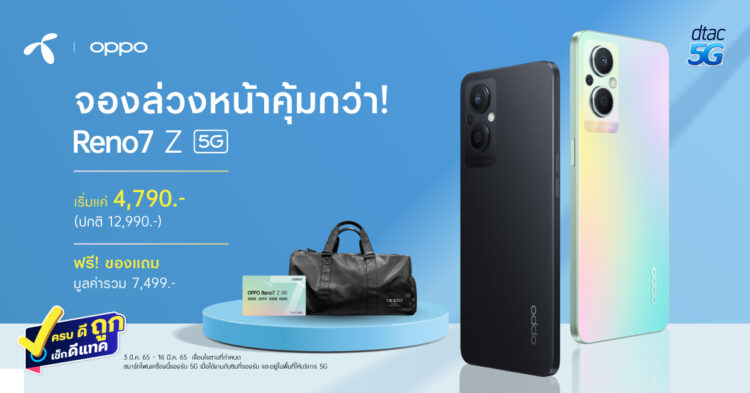 เตรียมสัมผัสอีกขั้นของภาพพอร์ตเทรตไปกับ OPPO Reno7 Z 5G ในราคาสุดคุ้ม พร้อมสิทธิพิเศษมากมายเมื่อจองผ่านดีแทค ตั้งแต่วันนี้ – 16 มีนาคม 2565 นี้