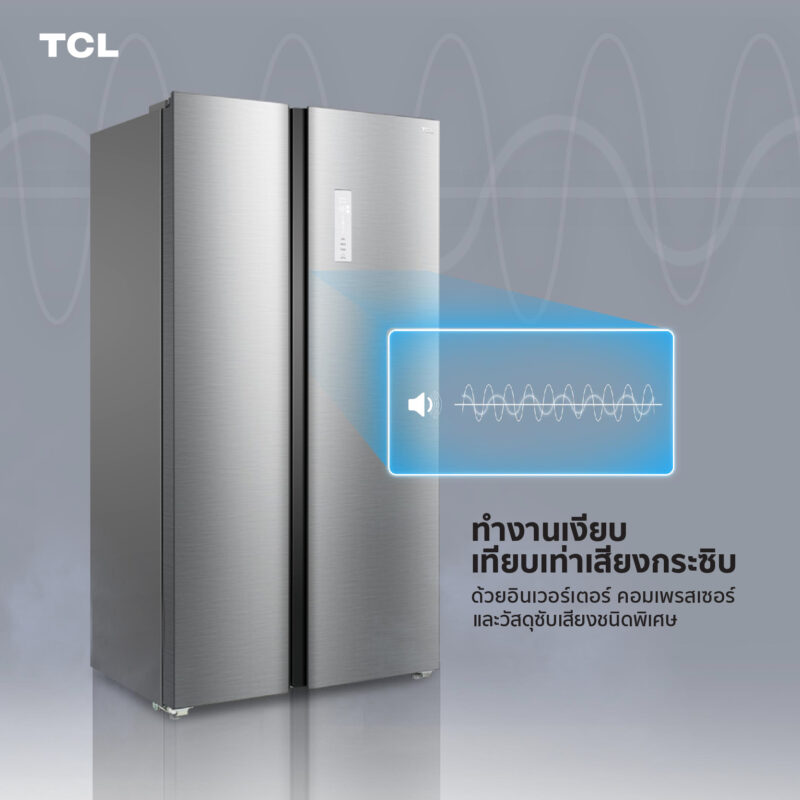 ใครที่ไม่ชอบเสียงรบกวน ตู้เย็น TCL รุ่น P505SBG รุ่นนี้ยิ่งตอบโจทย์ ด้วยการทำงานของคอมเพรสเซอร์ระบบอินเวอร์เตอร์ ที่ทำงานได้เงียบสนิท ระดับเสียงเพียงแค่ 38 เดซิเบลเท่านั้น ซึ่งเทียบเท่าเสียงกระซิบ อีกทั้งยังมาพร้อมกับแผ่นซับเสียงวัสดุชนิดพิเศษ แผ่นยางรองกันสะเทือน และเทคโนโลยีลดเสียงรบกวน เป็นอีกตัวช่วยที่ทำให้การทำงานของตู้เย็น TCL รุ่นนี้ เงียบแบบไร้ที่ติ