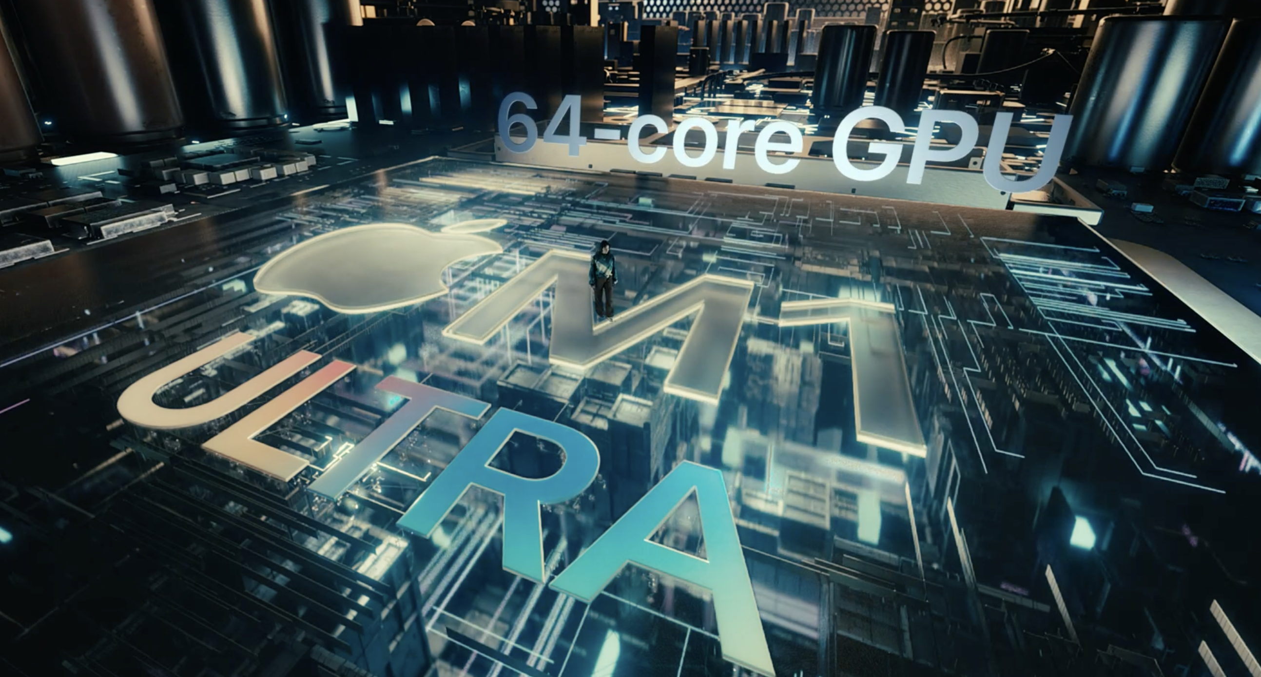 สำหรับงานที่เน้นกราฟิกหนักๆ อย่างการเรนเดอร์ 3D และการประมวลผลภาพที่ซับซ้อนนั้น ชิป M1 Ultra ก็มี GPU แบบ 64-core ซึ่งใหญ่กว่าชิป M1 ถึง 8 เท่า จึงมีประสิทธิภาพเร็วยิ่งกว่า GPU ระดับสูงสุดใน PC แต่ใช้พลังงานน้อยกว่าถึง 200 วัตต์3