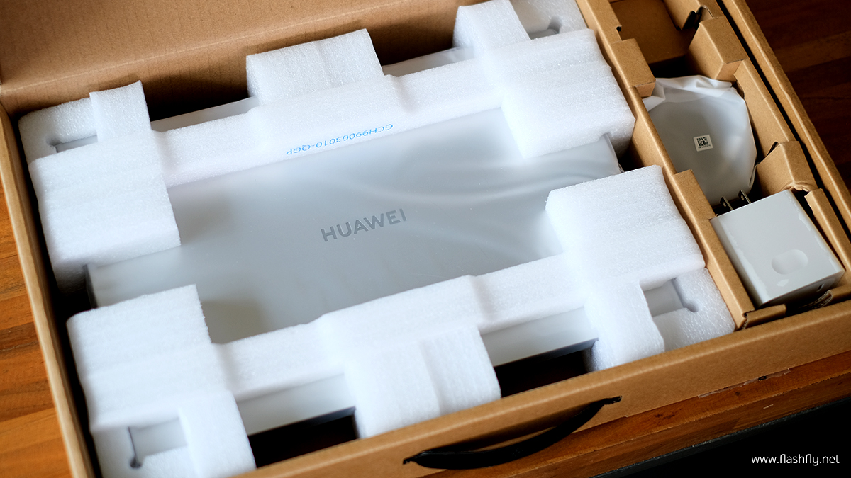 เมื่อเปิดกล่องออกมา จะพบกับ MateBook D 14 วางอยู่ภายในกล่อง ที่มีการเซฟด้วยโฟมอย่างปลอดภัย มาพร้อมกับเอกสารคู่มือและสาย USB-C พร้อมกับอะแดปเตอร์ชาร์จไฟ 65W ที่มีดีไซน์กะทัดรัดสำหรับใช้งานชาร์จไฟอย่างรวดเร็ว