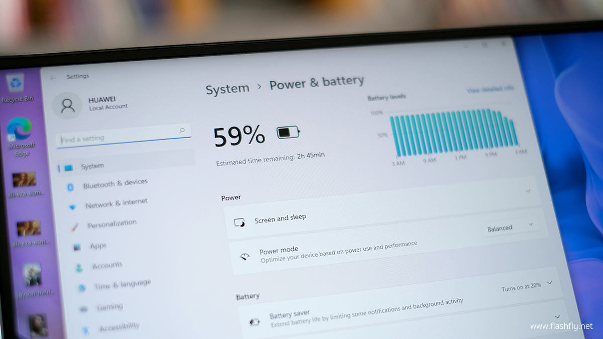 HUAWEI MateBook D 14 มาพร้อมกับแบตเตอรี่ขนาดใหญ่ 56 Wh สามารถเล่นวิดีโอความคมชัดระดับ HD ได้นาน 10.5 ชั่วโมง หรือจะใช้งานประชุมออนไลน์หรือทำงานก็ใช้งานได้ยาวนาน และยังรองรับชาร์จเร็ว 65W ที่ชาร์จผ่านพอร์ต USB-C