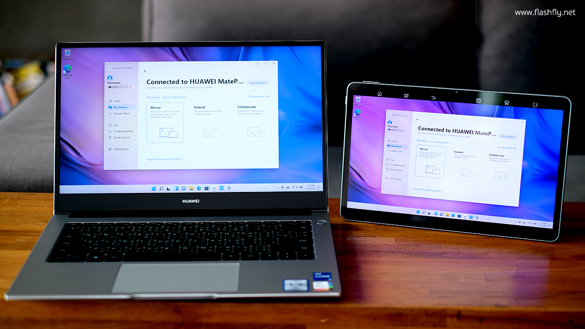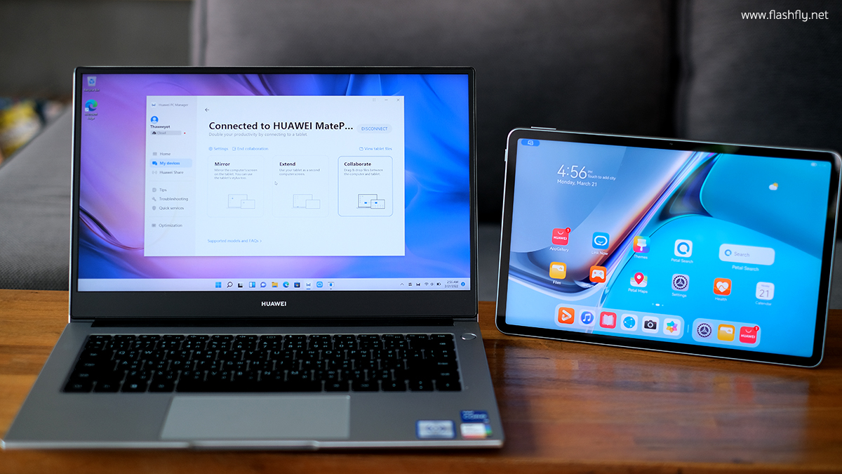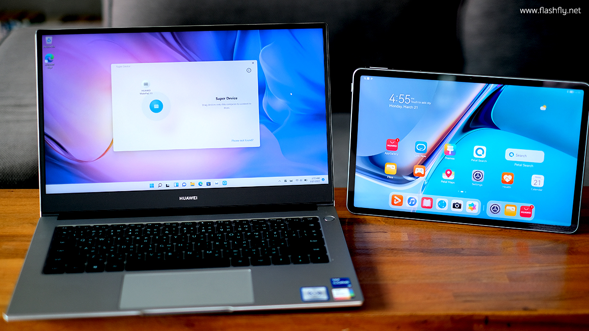 และเมื่อไม่นานมานี้ทางทีมงาน @Flashfly ก็ได้รับเกียรติจากทาง HUAWEI ประเทศไทยเข้าไปสัมผัสประสบการณ์การใช้งานจริงของ Super Device แบบเอ็กคลูชีฟ ซึ่งแนะนำและสาธิตโดยคุณแชมป์-สหศักดิ์ เตชะธรรมจิต ผู้ช่วยผู้อำนวยการประจำประเทศไทย บริษัท หัวเว่ย คอนซูมเมอร์ บิสสิเนส กรุ๊ป (ประเทศไทย) จำกัด ได้กล่าวว่านี่คือการพัตนาอย่างต่อเนื่อง ที่จะทำให้การใช้งานทุกอุปกรณ์ของ HUAWEI เป็นเรื่องง่ายสำหรับผู้ใช้งานทั้งที่ออฟฟิสหรือที่บ้าน โดยอุปกรณ์ที่นำมาทดสอบในครั้งนี้ก็คือ HUAWEI MateBook D 14 รุ่นใหม่ที่เปิดตัวในปี 2022 นี้นั้นเอง และในบทความรีวิวนี้จะพาทุกท่านไปทำความรู้จักกับแล็ปท็อปรุ่นใหม่และการทำงานของ Super Device กัน