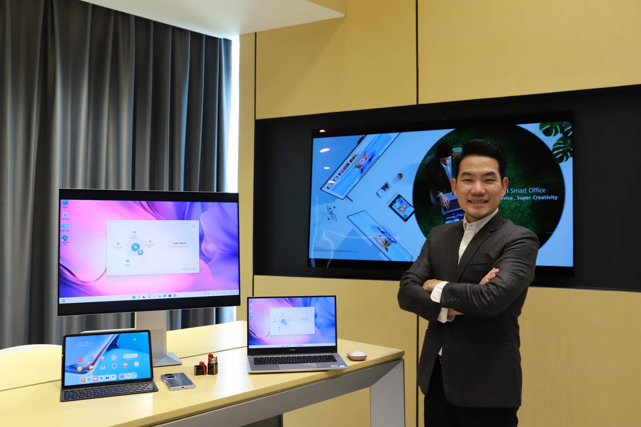 หลังจากที่ HUAWEI ได้เปิดตัวคอนเซ็ปท์สมาร์ทออฟฟิศ “Super Device” ไปเมื่อช่วงปลายเดือนกุมภาพันธ์ที่ผ่านมา โดยโซลูชันใหม่ที่จะยกระดับการเชื่อมต่อข้ามอุปกรณ์และการทำงานร่วมกันระหว่างอุปกรณ์ต่างๆ ของหัวเว่ยที่รองรับการใช้งานเทคโนโลยี Super Device ที่จะทำให้การทำงานกับอุปกรณ์ของ HUAWEI ต่างๆ ไร้รอยต่อมากขึ้น