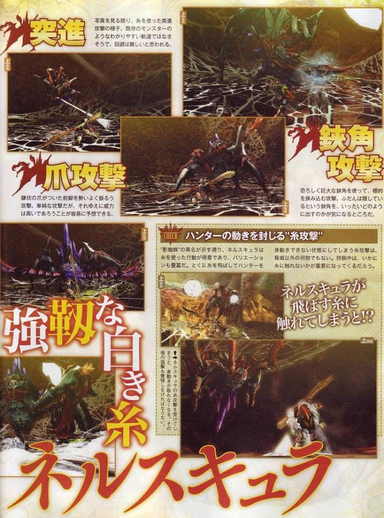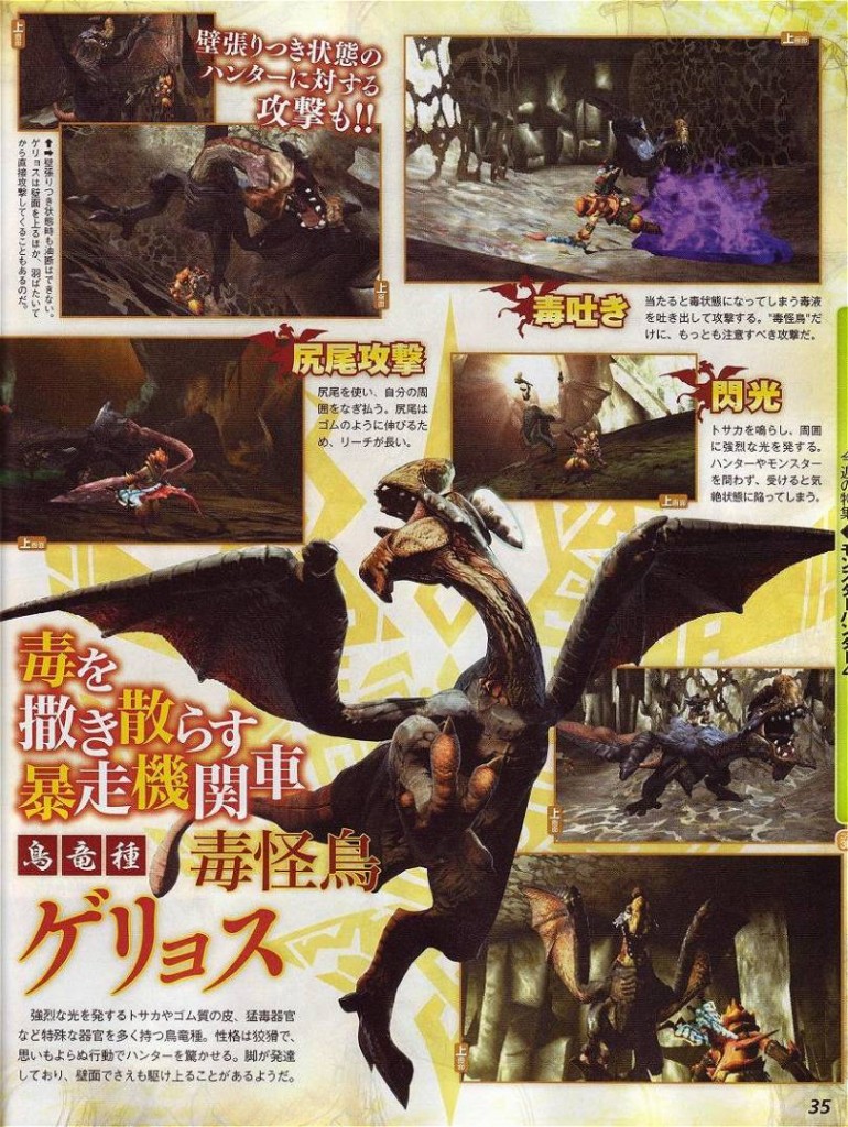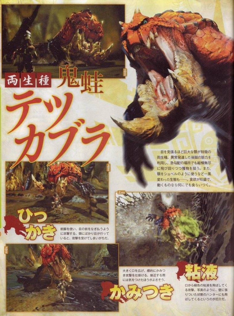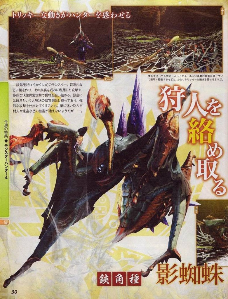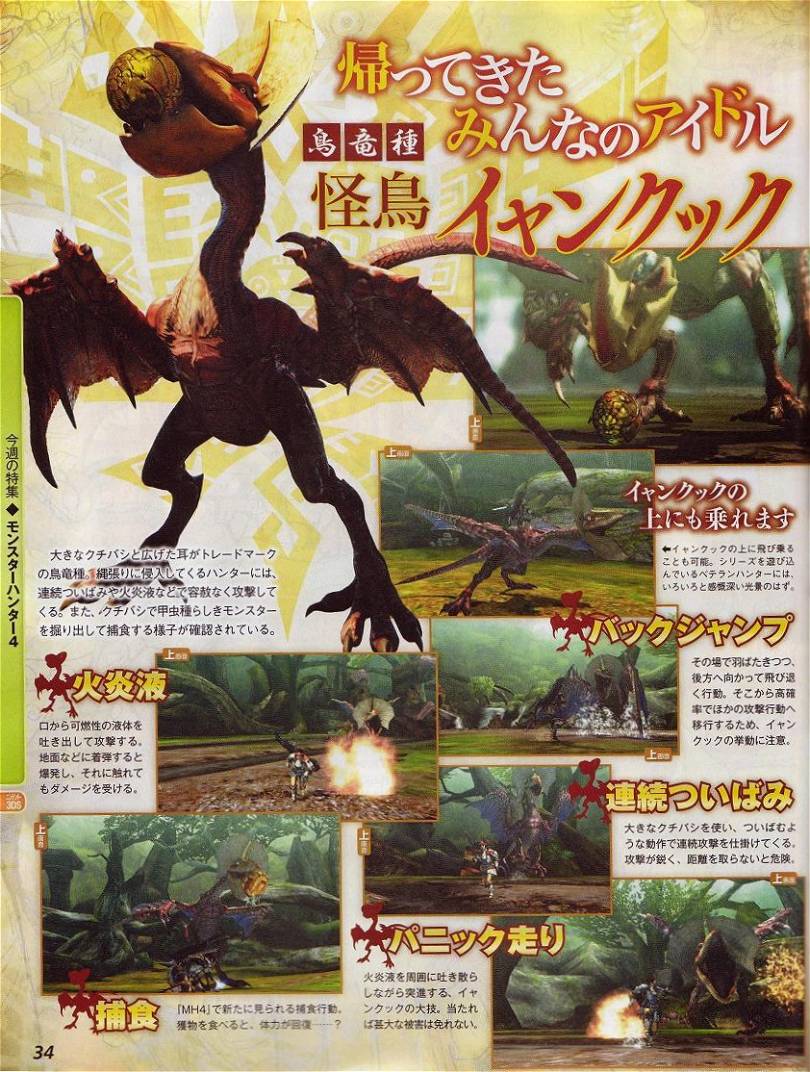 ภาพสแกนชุดล่าสุดของเกม Monster Hunter 4 จากนิตยสาร Famitsu ของญี่ปุ่น ในภาพสแกนชุดนี้จะทำให้ผู้เล่นได้เห็นรายละเอียดต่างๆในตัวเกมมากยิ่งขึ้นไม่ว่าจะเป็นบอสตัวใหม่ที่ดูคล้าย Nerusukyora กับ Tetukapura หรือพื้นที่ในการล่าใหม่ถ้ำใต้ดิน เกมล่าแย้สุดฮิตของค่าย Capcom ภาคนี้มีกำหนดวางจำหน่ายเดือนมีนาคมปี 2013 ที่ญี่ปุ่น