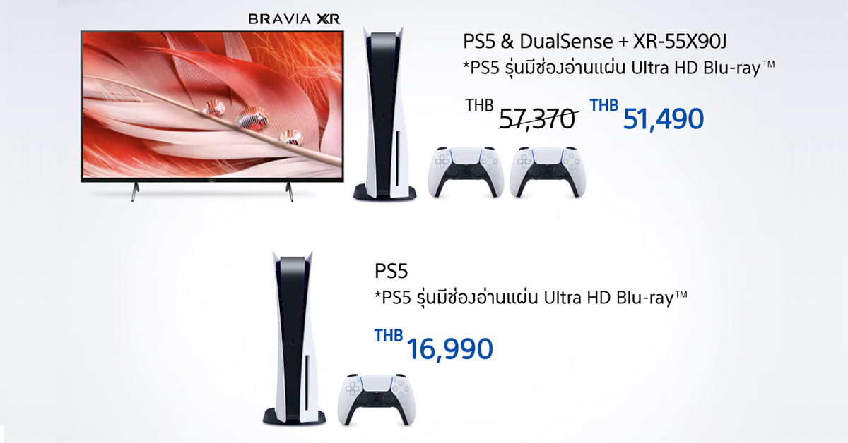 1. PlayStation5 รุ่นมีช่องอ่านแผ่น Ultra HD Blu-ray™ คู่กับคอนโทรลเลอร์ไร้สาย DualSense และ TV XR-55X90J 51,490 บาท