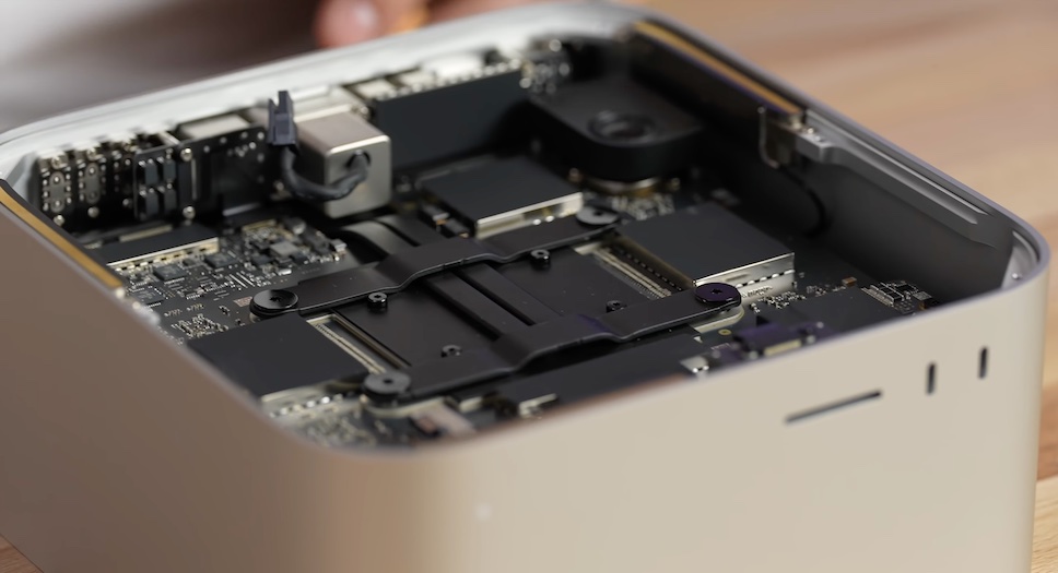 เจ้าของช่อง Max Tech ได้จัดการรื้อส่วนประกอบของ Mac Studio จนเข้าถึงฮาร์ดแวร์ภายในทั้งหมด และพบว่าที่เก็บข้อมูล SSD ของ Mac Studio มี 2 ช่อง และง่ายต่อการถอดเปลี่ยนหรือสลับช่องกัน เนื่องจากไม่ได้ถูกบัดกรีไว้