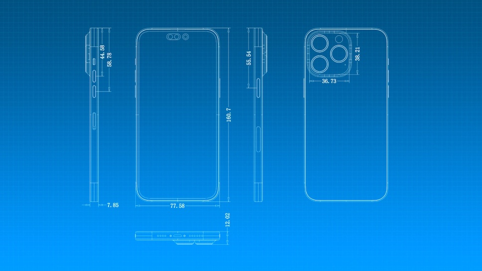 แผนผังการออกแบบ iPhone 14 Pro และ iPhone 14 Pro Max แสดงให้เห็นว่าทั้งคู่ไม่มีรอยบากบนหน้าจออีกต่อไปแล้ว แต่ถูกแทนที่ด้วยวิธีการเจาะหลุม 2 ช่อง โดยช่องแรกเป็นรูปแคปซูลยา อีกช่องเป็นหลุมวงกลม
