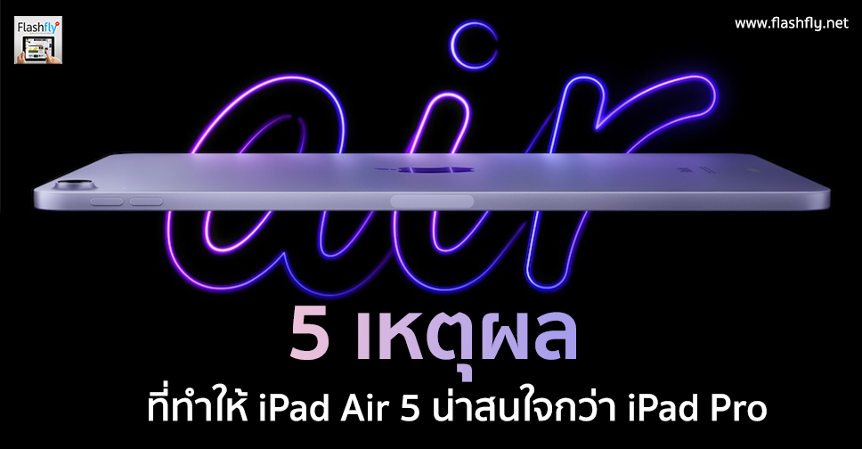 Apple พร้อมวางจำหน่าย iPad Air รุ่นที่ 5 ในประเทศไทยแล้ววันนี้ โดยได้รับการปรับปรุงประสิทธิภาพครั้งใหญ่ ทำให้มีความสามารถหลายอย่างเทียบเท่า iPad Pro ไม่ว่าจะเป็นชิปประมวลผล การเชื่อมต่อ ระบบกล้องหน้า และอายุการใช้งานแบตเตอรี่ นอกจากนี้ ยังมีเหตุผลอีก 5 ข้อ ที่ทำให้ iPad Air รุ่นที่ 5 เป็นตัวเลือกที่ดีกว่า iPad Pro