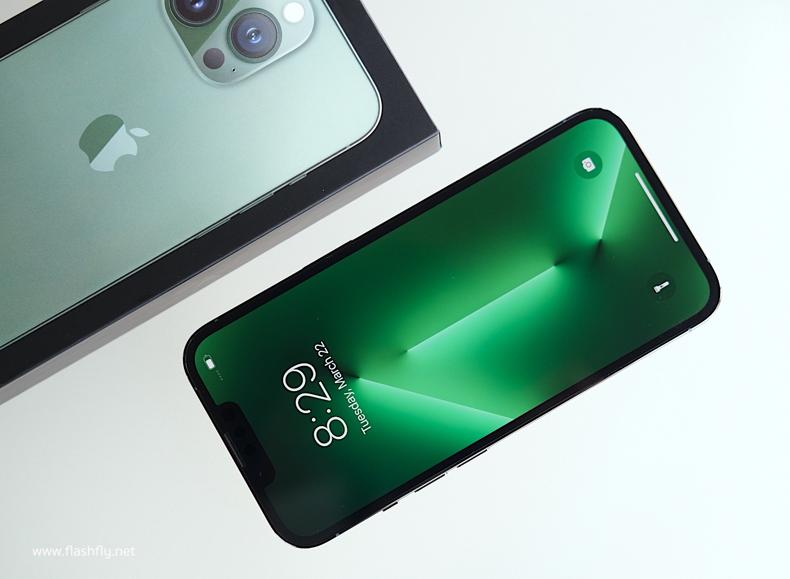 จอแสดงผลของ iPhone 13 Pro สีเขียวอัลไพน์ เรียกว่า Super Retina XDR เช่นกัน เพราะใช้จอภาพ OLED เช่นเดียวกัน แต่มีความละเอียด 2532 x 1170 พิกเซล ขนาด 6.1 นิ้ว และเหนือกว่าด้วยเทคโนโลยี ProMotion ทำให้รองรับอัตราการรีเฟรชหน้าจอแบบปรับได้สูงสุดที่ 120Hz จึงตอบสนองการเลื่อนหน้าจอได้อย่างราบรื่น ควบคุมการเล่นเกมได้ลื่นไหล และยังมีช่วยช่วยในการประหยัดแบตเตอรี่