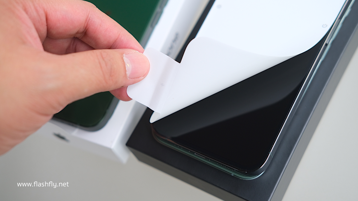 iPhone 13 Pro สีเขียวอัลไพน์ และ iPhone 13 mini สีเขียว ได้รับการปกป้องริ้วรอยบนหน้าจอด้วยแผ่นกระดาษ แทนการห่อหุ้มด้วยซองพลาสติก โดยแผ่นกระดาษที่ติดบนหน้าจอ ยังมีลิ้นยื่นออกมาช่วยให้ผู้ใช้งานหยิบ iPhone ออกจากกล่องได้สะดวก